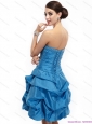 Modest Baby Blue Strapless Prom Dresses with Pick Ups and Beading