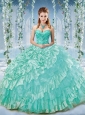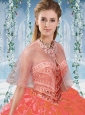 Modest Beaded and Ruffled Big Puffy Discount Quinceanera Dress in Organze and Taffeta