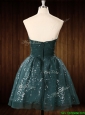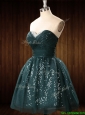 Modest Beaded Top Dark Green Short Prom Dress in Organza