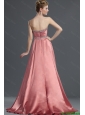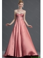 Modest Beading Elastic Woven Satin Prom Dresses with Brush Train