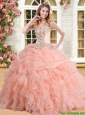 Modest Big Puffy Peach Quinceanera Dress with Appliques and Ruffles