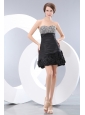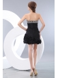 Modest Black A-line / Princess Sweetheart Beading Little Back Dress Mini-length Taffeta