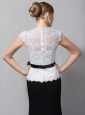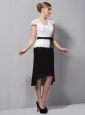 This white and black beautiful dress will make your big day the unique one and leave a everlasting wonderful memory.The fitted bodice is all covered with elegant lace fabric and is adorned with cap lace sleeves. The waist is decorated by a black waistband which contrasts the color of lace and the band is gathered together with a bowknot on the left. The flowy skirt is the high-low style that echos the modern fashion. A zipper-up back completes this fabulous dress.What are you looking for? Bring it to your home with no hesitation.