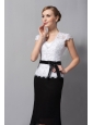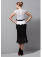 Modest Black and White Mother Of The Bride Dress Column Square Sash Tea-length Lace and Chiffon