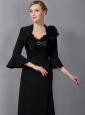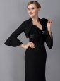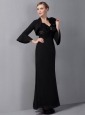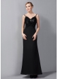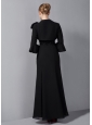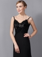 Modest Black Column Mother Of The Bride Dress Straps Appliques Ankle-length Chiffon