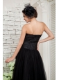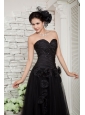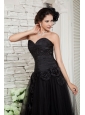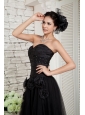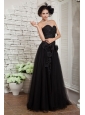 Home >  Prom Dresses >  Beautiful Prom Dresses > Modest Black Empire Little Black Dress Beading and Hand Made FlowersSweetheart Tulle Floor-length