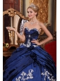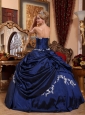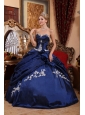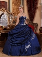 Silhouette: Ball Gown Neckline: Sweetheart Waist: Fitted Hemline/Train: Floor-length Sleeve Length: Sleeveless Embellishment: Appliques and Pick-ups Back Detail: Lace-up Fully Lined: Yes Built-In Bra: Yes Fabric: Taffeta Shown Color: Blue(Color & Style representation may vary by monitor.) Occasion: Quinceanera, Sweet 16, Military Ball Season: Spring, Summer, Fall, Winter