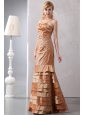 Home >  Prom Dresses >  Modest Prom Dresses > Modest Brown Column Prom Dress Straps Taffeta Beading Floor-length