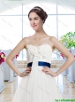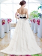 Modest Brush Train Wedding Dresses with Belt and Appliques