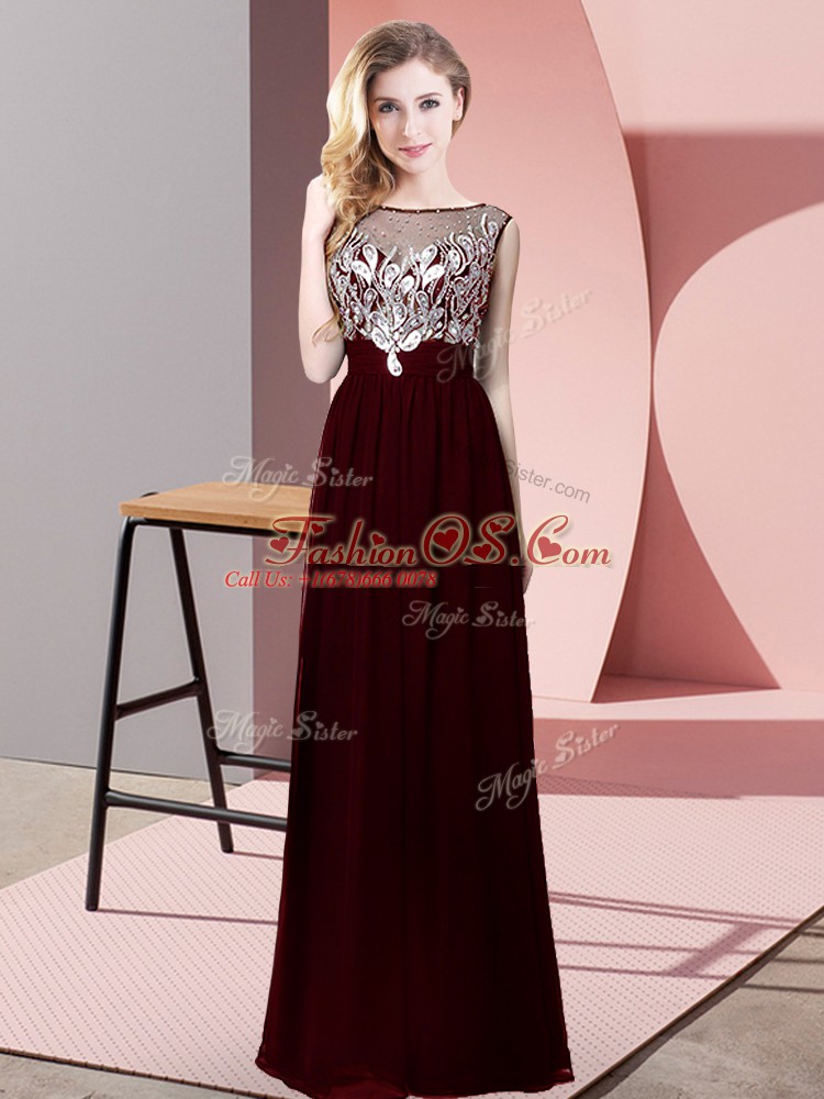 Modest Burgundy Scoop Backless Beading Mother Of The Bride Dress Sleeveless
