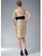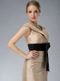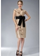 Modest Champagne Column Mother Of The Bride Dress V-neck Knee-length Taffeta Bowknot