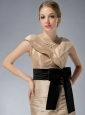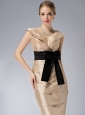 Home >  Special Occasion Dresses >  Mother of the Bride Dresses > Modest Champagne Column Mother Of The Bride Dress V-neck Knee-length Taffeta Bowknot
