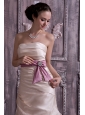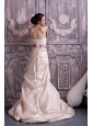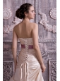 Home >  Prom Dresses >  Popular Prom Dresses > Modest Champagne Prom Dress A-line / Princess Strapless Belt and Beading Satin Brush Train