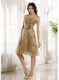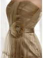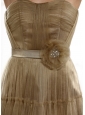 Are you still looking for a fantastic dress that will impress everyone on your big day? There is no better choice than this one. This champagne dress features spaghetti straps ruching bodice with a sweetheart neckline, which is pretty and noble. The satin wasistband with a delicate flower contours your curve. The knee-length skirt with stringy selvedge ornament is lightweight, made from several layers of airy fabric that move beautifully when you do.You will be the party queen under the spotlight in this dress!