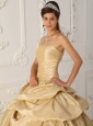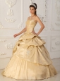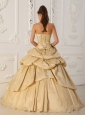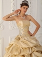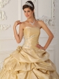 Modest Champagne Strapless Taffeta Beading Quinceanera Dress A-Line / Princess