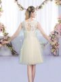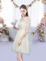 Modest Champagne Tulle Lace Up Wedding Guest Dresses Sleeveless Mini Length Lace and Bowknot