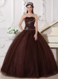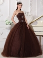 Modest Chocolate Quinceanera Dress Sweetheart Tulle Rhinestones Ball Gown