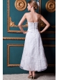 Are you longing to own a perfect dress for your wedding? This may be just the one you can't miss. This dress features a strapless straight cut neckline, the bodice encrusted by nice appliques decoration, which is so delicate and pretty. The slender sash band with a hand made flower aside makes the dress more elegant. For the skirt, there is a see-through tulle overlayed, which is so soft and gentle, while exquisite appliques adorned on the ankle length skirt make this dress unique shaped. This dress will be sure to wow all the presents in the wedding.