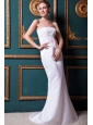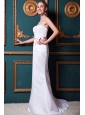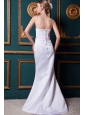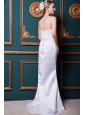 Home >  Wedding Dresses >  Affordable Wedding Dresses > Modest Column Strapless Brush Train Satin Appliques Wedding Dress