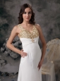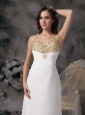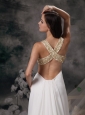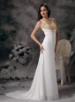 Modest Column V-neck Wedding Dress Chiffon Beading Brush Train