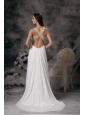 Home >  Wedding Dresses >  Latest Wedding Dresses > Modest Column V-neck Wedding Dress Chiffon Beading Brush Train