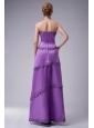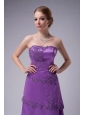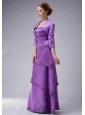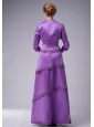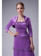 Purple is the name of modesty and nobleness. For this modest gown, fitted bodice, perfect embellishment and tiered skirt is the most shinning point. Appliques and beads embellished all-over highlight the sense of elegance. On the top bodice, the embellishments help to flare the bustline and rich the fitted bodice all around to the back. The flowy skirt is enriched with tiers which trimed all around by the appliques and highlighted by the shinning crystals. The matching jacket with a pair of 3/4 length sleeves completes the design. A hidden zipper in the back makes for easy off and on and secures the dress in place.