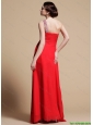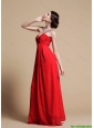 Modest Empire One Shoulder Red Prom Dresses with Beading
