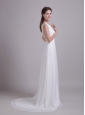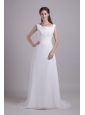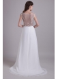 Modest Empire Scoop Brush Train Chiffon Wedding Dress with Beading