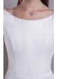 This simple and clean wedding dress features a scoop neckline with lace in the back of the bodice, the column skirt is full, yet tailored and extends into a sweep train, this angelic dress is for anyone who wants simple but stunning.
