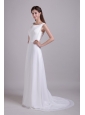 Home >  Wedding Dresses >  Affordable Wedding Dresses > Modest Empire Scoop Brush Train Chiffon Wedding Dress with Beading
