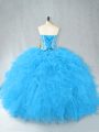 Modest Floor Length Baby Blue 15 Quinceanera Dress Tulle Sleeveless Beading and Ruffles