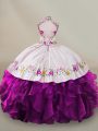 Modest Floor Length Lace Up Quinceanera Gown Purple for Party and Sweet 16 and Quinceanera with Embroidery