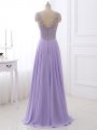 Modest Floor Length Lavender Evening Dresses Chiffon Sleeveless Beading
