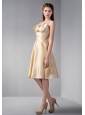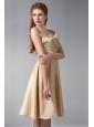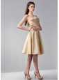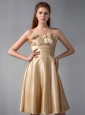 Home >  Bridesmaid Dresses >  Cheap Bridesmaid Dresses > Modest Gold Empire Strapless Ruch Bridesmaid Dress Knee-length Elastic Woven Satin