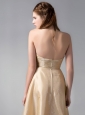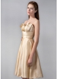 Modest Gold Empire Strapless Ruch Bridesmaid Dress Knee-length Elastic Woven Satin