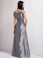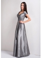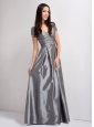 Modest Grey A-line Mother Of The Brides Dress V-neck Ruch Floor-legnth Taffeta