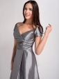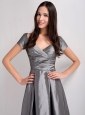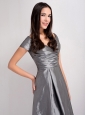 Home >  Special Occasion Dresses >  Mother of the Bride Dresses > Modest Grey A-line Mother Of The Brides Dress V-neck Ruch Floor-legnth Taffeta