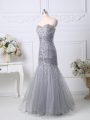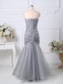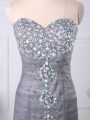 Modest Grey Sleeveless Floor Length Beading and Ruching Zipper Dress for Prom
