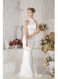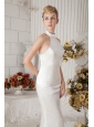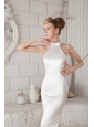 You will look like a million in this elegant white prom dress! This one features a halter top covered with trapezoid shaped fabric and close fitting to hug curves and outline the silhouette of your body. The sneath style dress tends to show off a well-toned body. The low open back has a hidden zipper and a brush trian finish a gorgeous look. You're sure to land on everyone's best dress list!