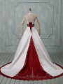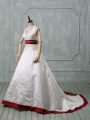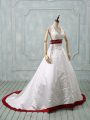 Modest Halter Top Sleeveless Satin Wedding Gown Beading and Embroidery Brush Train Lace Up