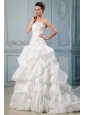 Home >  Wedding Dresses >  Latest Wedding Dresses > Modest Hand Made Flowers and Pick-ups Wedding Gowns With Appliques In Wedding Party
