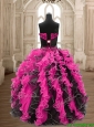 Modest Hot Pink and Black Quinceanera Dress with Beading and Ruffles