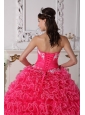 Strapless dresses are one of the sexier styles on the market today. They show just enough skin to be classy without being too revealing. This hot pink quinceanera dress features a strapless bodice and a sweetheart neckline. The bust part is heavily adorned with embroidery. The ruffles on the upper part of the skirt adds interest and grace to the dress.