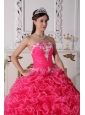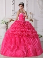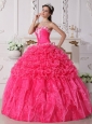 Modest Hot Pink Quinceanera Dress Strapless Organza Embroidery with Beading Ball Gown