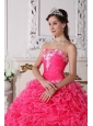 Modest Hot Pink Quinceanera Dress Strapless Organza Embroidery with Beading  Ball Gown