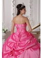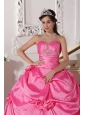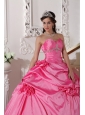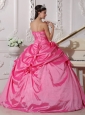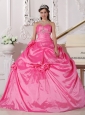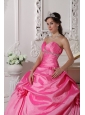 Modest Hot Pink Quinceanera Dress Sweetheart Taffeta Beading and Hand Made Flowers Ball Gown