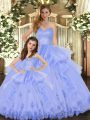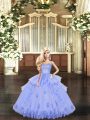 Modest Lavender Sweetheart Lace Up Appliques and Ruffles 15th Birthday Dress Sleeveless