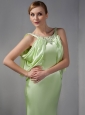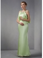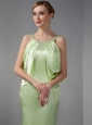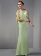 Modest Light Green Column Scoop Beading Prom Dress Floor-length Taffeta