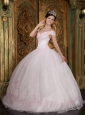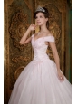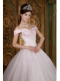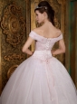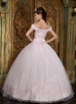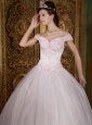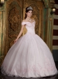 Modest Light Pink Quinceanera Dress Off The Shoulder Appliques Organza Ball Gown