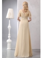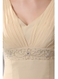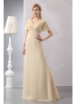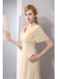 Modest Light Yellow Empire Prom Dress V-neck Chiffon Beading Floor-length